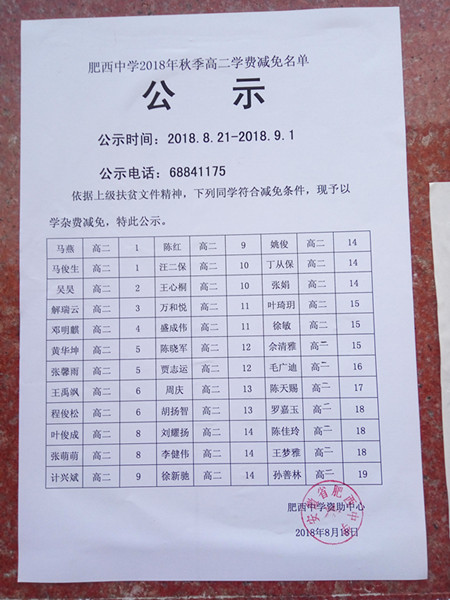 肥西中学把关心关爱家庭经济困难学生作为开学工作的重中之重,多措并举,畅通渠道,切实做好学生入学资助工作。