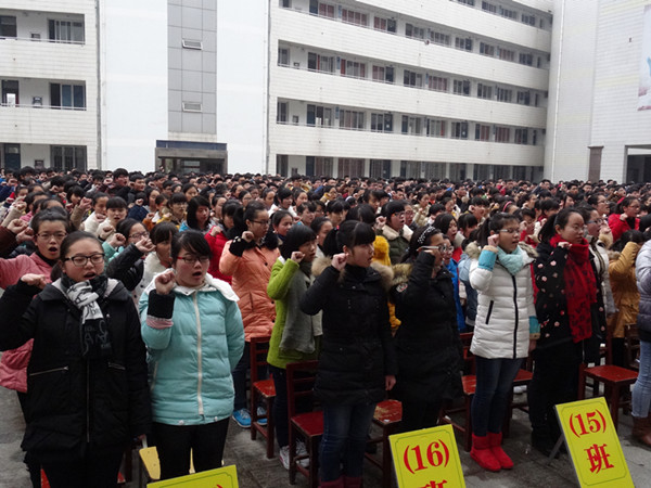 “心有梦想,唱青春无悔;金榜题名,续母校辉煌!”大会在全体同学庄严的宣誓口号中结束。(张治平)